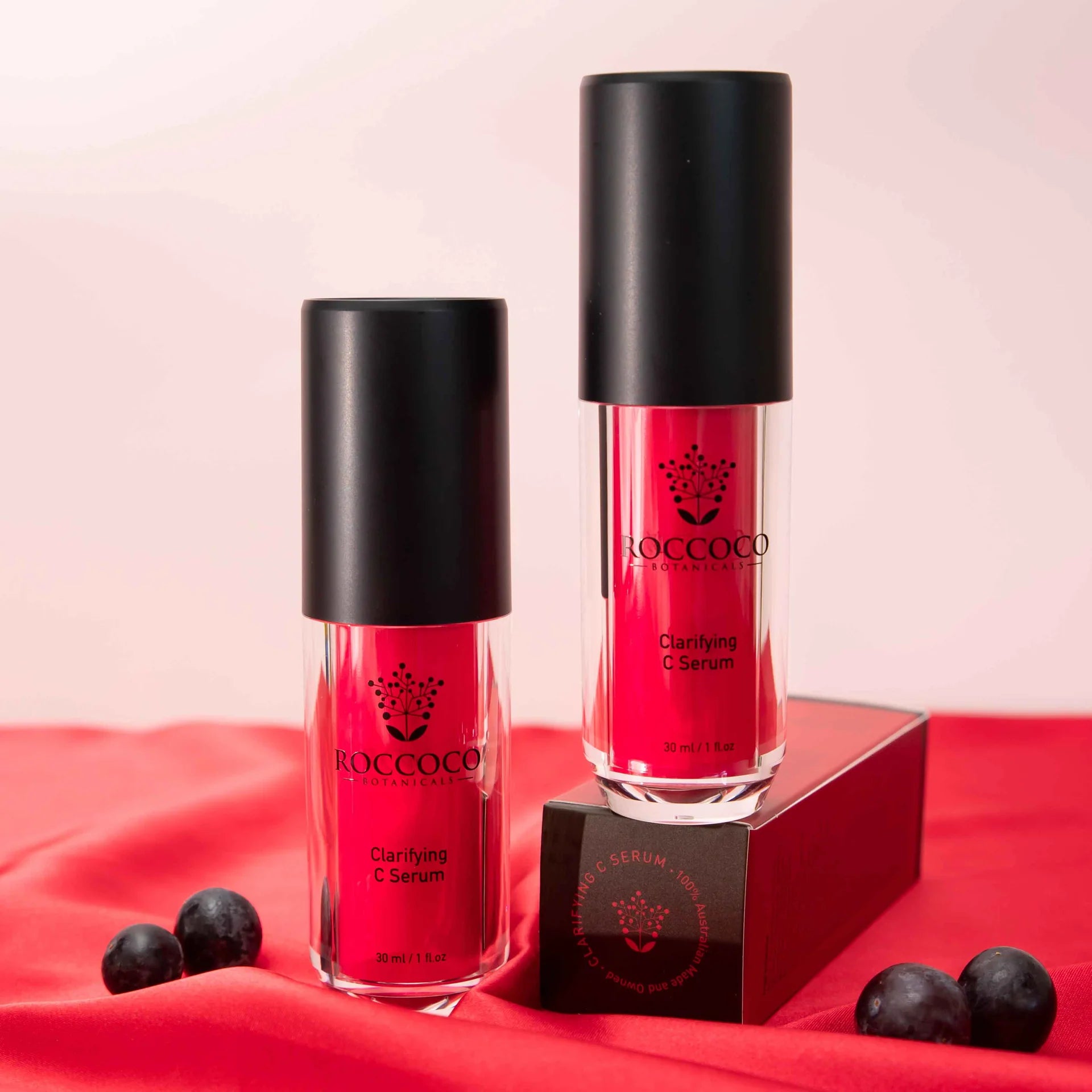 Roccoco Clarifying C Serum, your daily dose of clarity for clearer, brighter skin. Infused with potent Vitamin C and clarifying botanicals, this serum targets blemishes and uneven skin tone, while promoting a radiant complexion. With regular use, it helps to minimize the appearance of pores and refine skin texture, leaving your skin smooth and revitalized. Lightweight and fast-absorbing, it's the perfect addition to your skincare routine for a healthy, glowing complexion. Unveil your skin's natural radiance with Roccoco Clarifying C Serum.