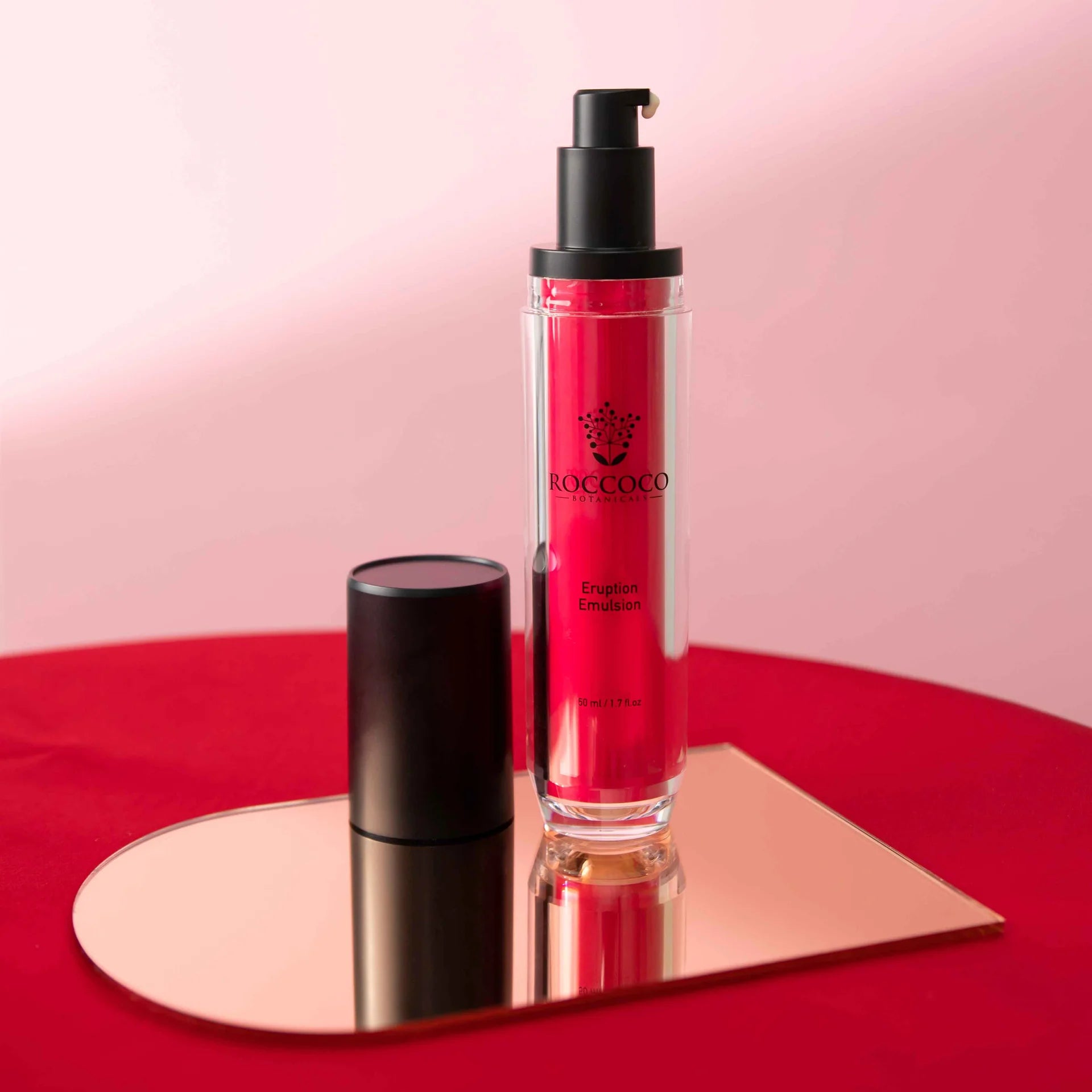 Roccoco Eruption Emulsion, your solution for calm and balanced skin. Crafted with soothing botanicals, this emulsion targets blemishes and irritation, promoting a clear and even complexion. Lightweight and fast-absorbing, it hydrates without clogging pores, leaving your skin feeling fresh and revitalized. Whether you're dealing with occasional breakouts or persistent concerns, Eruption Emulsion is your go-to for smoother, clearer skin. Embrace the beauty of balanced skin with Roccoco Eruption Emulsion.