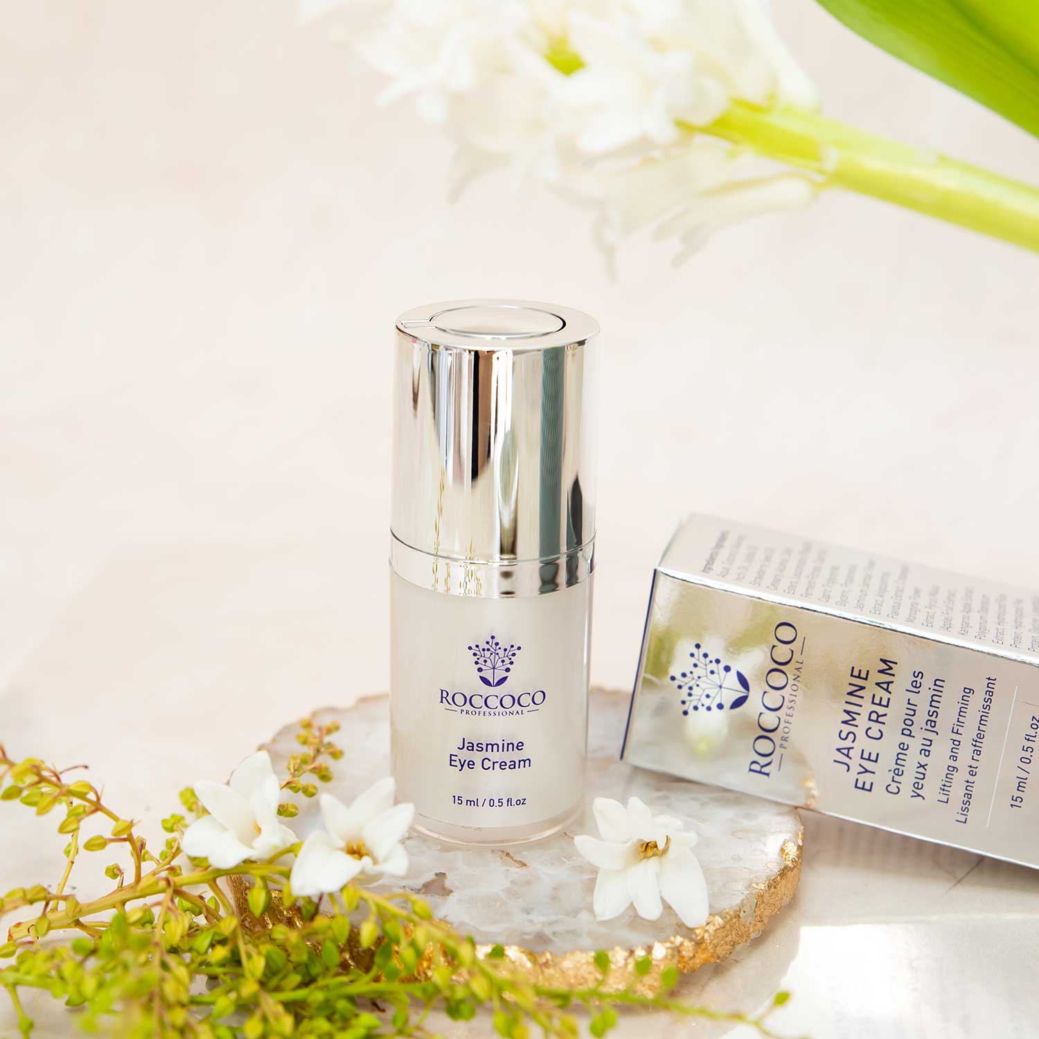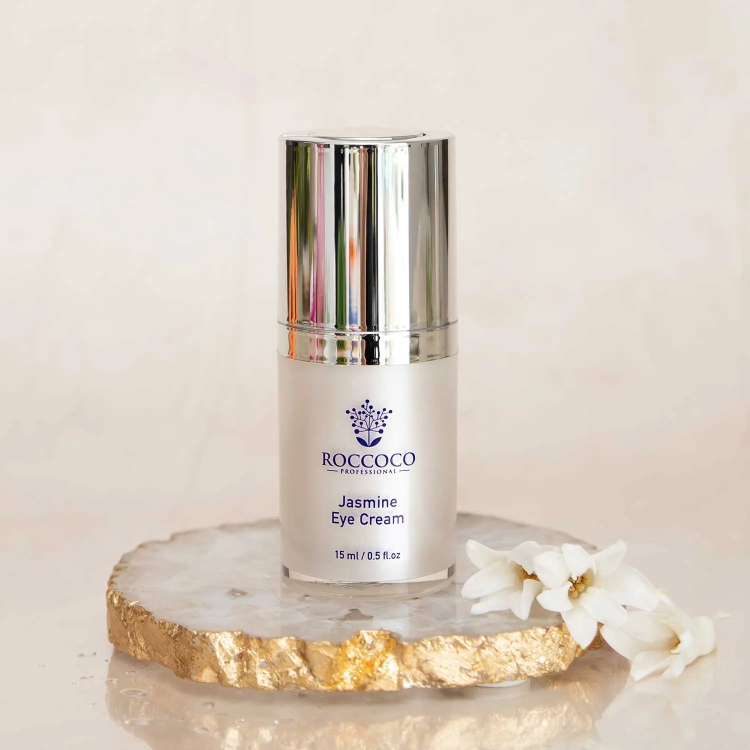 Revitalize your delicate under-eye area with Roccoco Jasmine Eye Cream. Infused with the soothing essence of jasmine, this luxurious eye cream nourishes and hydrates while diminishing the appearance of fine lines and dark circles. Formulated with potent botanical extracts and antioxidants, it rejuvenates tired eyes, leaving them looking brighter and more youthful. Experience the gentle touch of jasmine and indulge in the ultimate pampering for your eyes with Roccoco Jasmine Eye Cream.